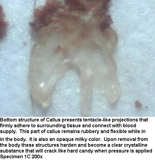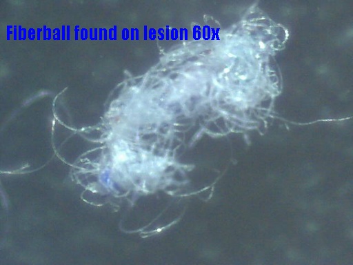 Εμφανίζονται ίνες αγνώστου προελεύσεως και σύστασης, διαφανείς, λευκές, κόκκινες και μπλε (!!!), οι οποίες φαίνεται να κινούνται από μόνες τους, ΔΕΝ καίγονται και όταν φωτίζονται με υπεριώδη ακτινοβολία (black light) φωσφορίζουν!!! Κάτω από τις ίνες, ΜΕΣΑ στο δέρμα, υπάρχουν διαφανή ζελεοειδή "πράγματα", τα οποία βρίσκονται βαθιά ριζωμένα στις εσωτερικές στιβάδες του δέρματος και αποσπώνται με μεγάλη δυσκολία και πόνο, και όταν ξεραθούν παίρνουν κρυσταλλική μορφή, άγνωστης σύστασης.